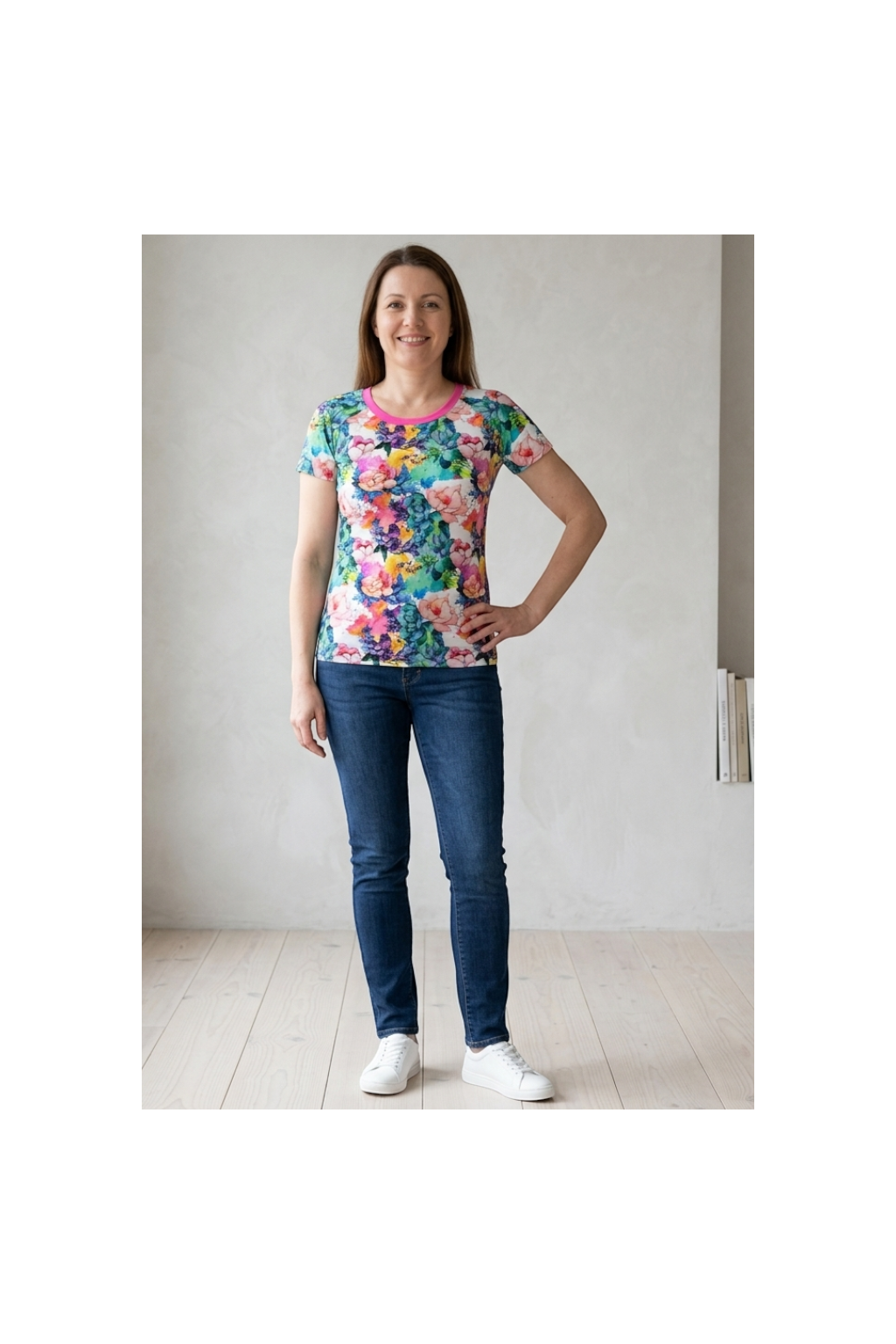 Dámské tričko s pestrobarevným květinovým vzorem.