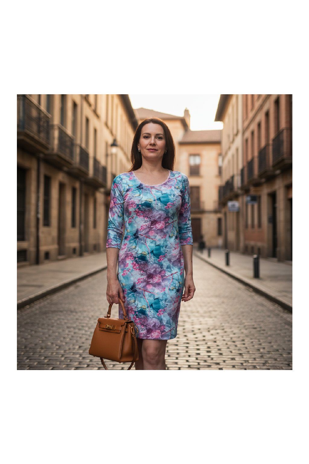 Elegantní dámské šaty z kvalitního úpletu s digitálním potiskem.