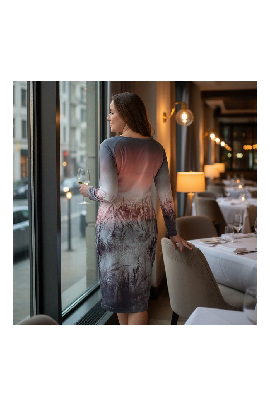 Elegantní dámské šaty z kvalitního úpletu s digitálním potiskem.