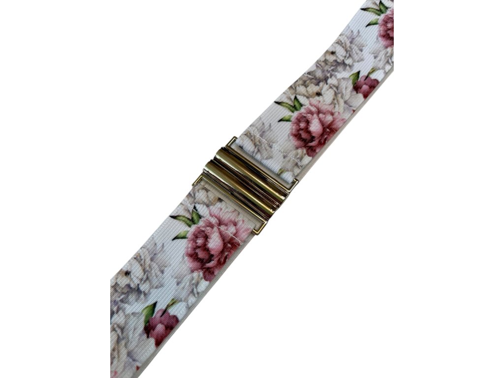 Pásek z designové potištěné gumy široké 4 cm s kovovou sponou.