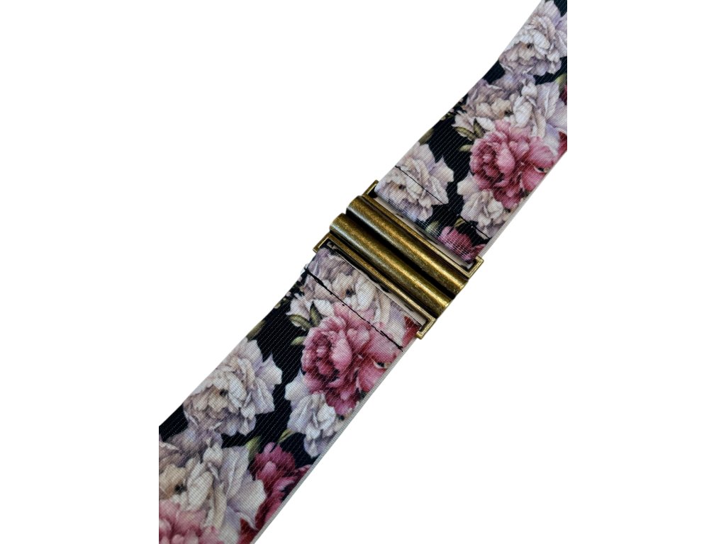 Pásek z designové potištěné gumy široké 5 cm s kovovou sponou.